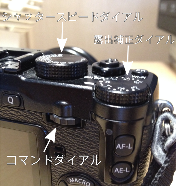 X-E2の本体にはダイヤルが3つあります。