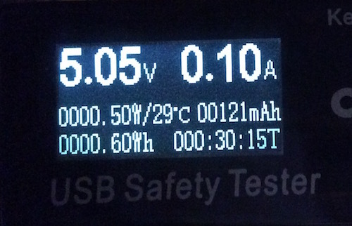 参考になるかわからないが、試しにUSBのテスターで調べてみた。