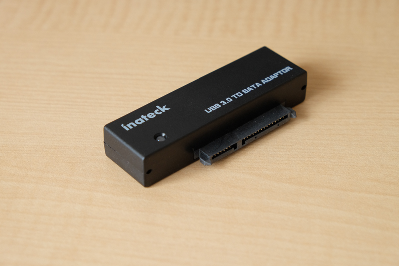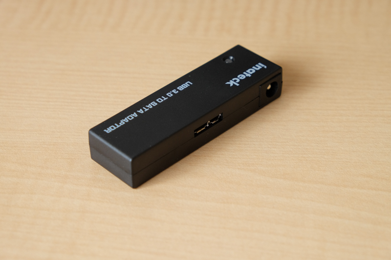 一方、チップが明記してある商品に絞ると、ASMediaのASM系か、JMicronのJMS系が多いように思う。そこから、3TBに対応し、ACアダプターでHDDにも接続可能で、転送速度のベンチ結果が良さそうなものに絞って、最終的に選んだのは、こちらのInateck。