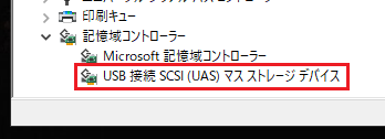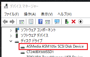 Windowsのデバイスドライバーで確認すると、ASMedia ASM105x SCSI Disk Device として認識されている。