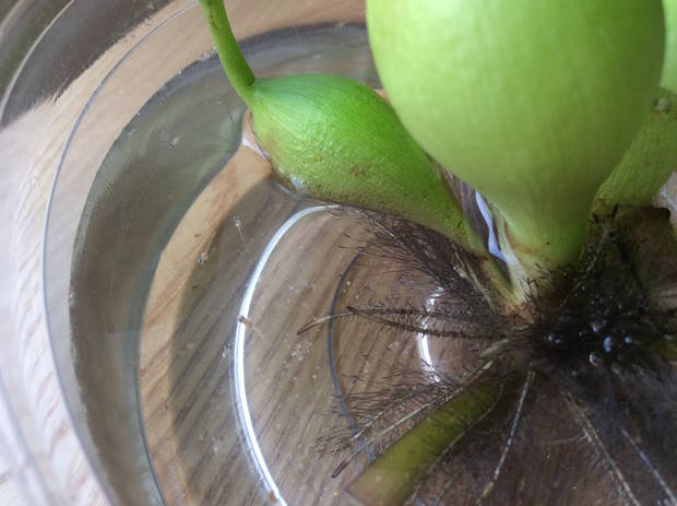 ホテイアオイから卵を採取する