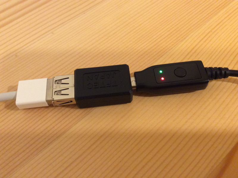 そこで、動作保証外なのは承知の上で、Micro-B端子をUSB Type Aのメスへ変換するアダプターを購入して、iPhone7とつなげてみた。